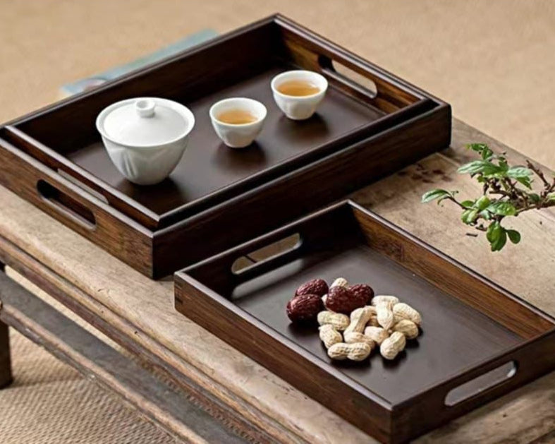 Serve in style with our 3‑Piece Wooden Kitchen Tray Set. Made from sturdy wood with built-in handles, these nesting trays are perfect for entertaining, organizing, or everyday kitchen use.