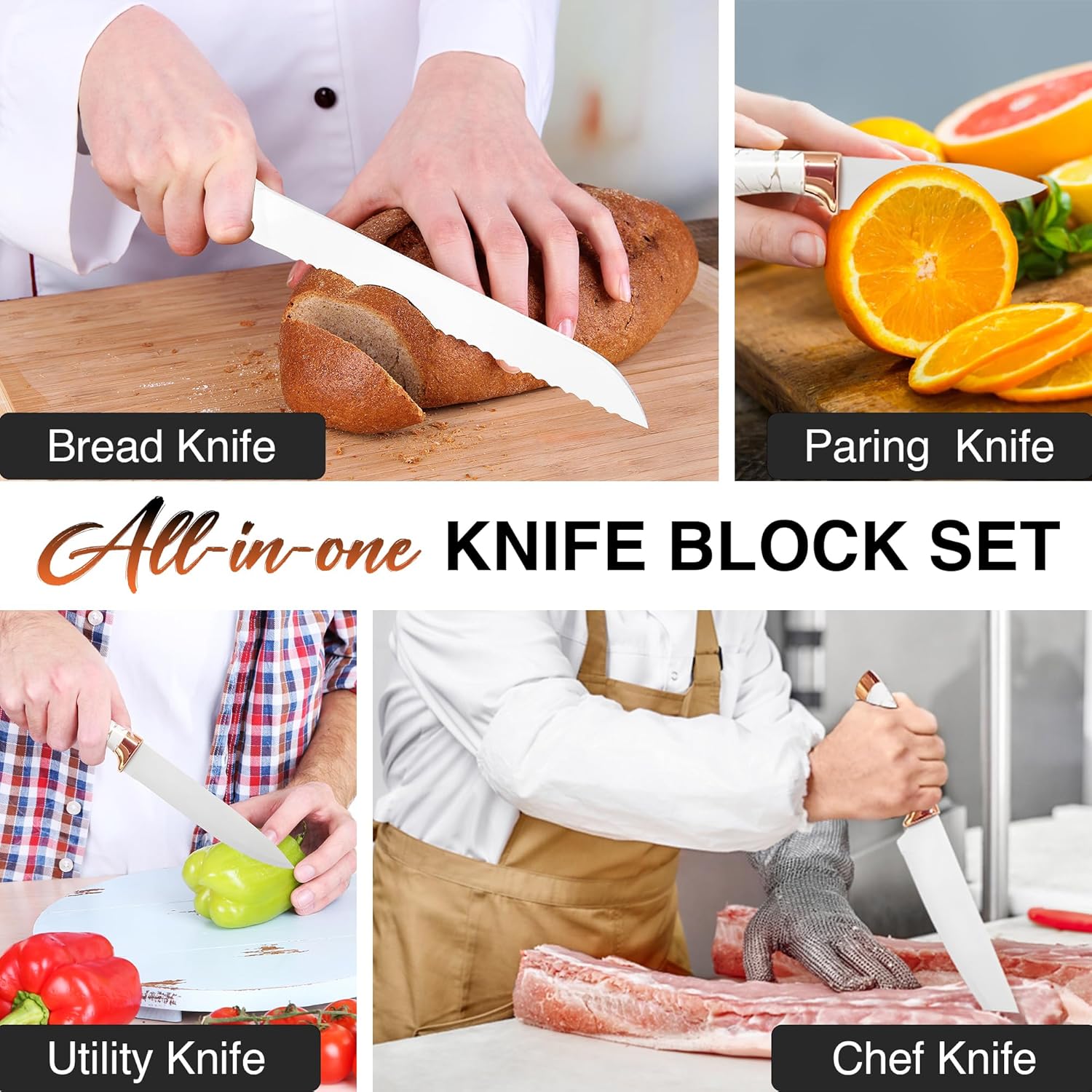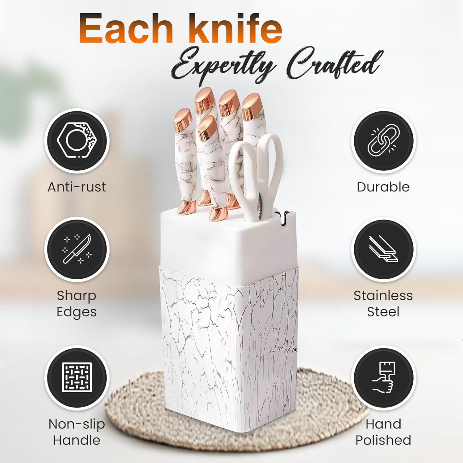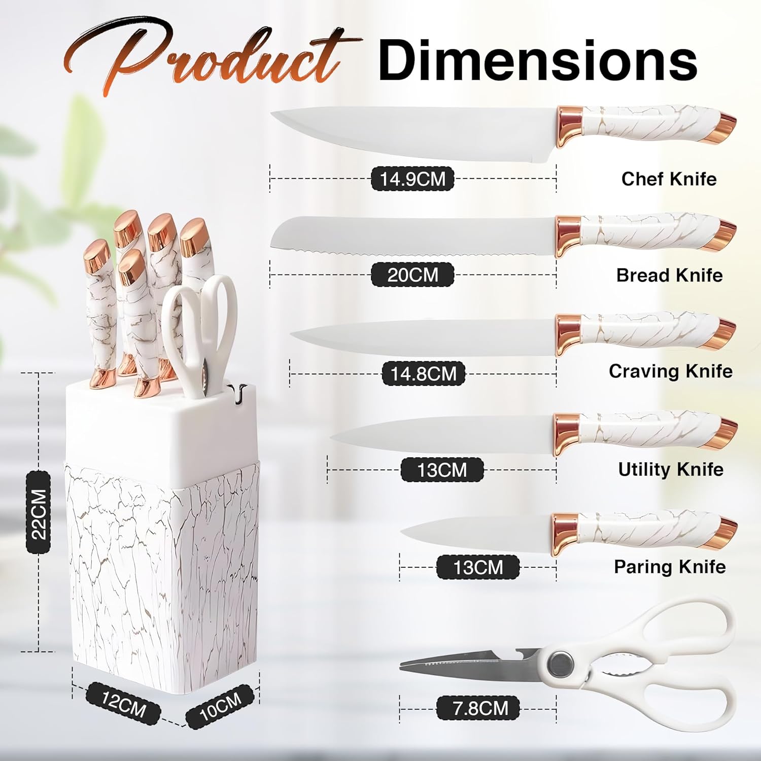 - 5 x Stainless Steel Knives (Chef, Bread, Slicer, Utility & Paring)